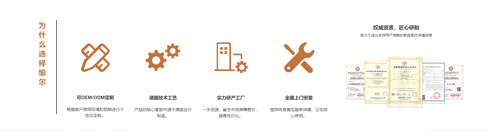 為質量負責就是為用戶健康負責,產品均獲得多項國際質量標準認證,符合13個國家出口要求。